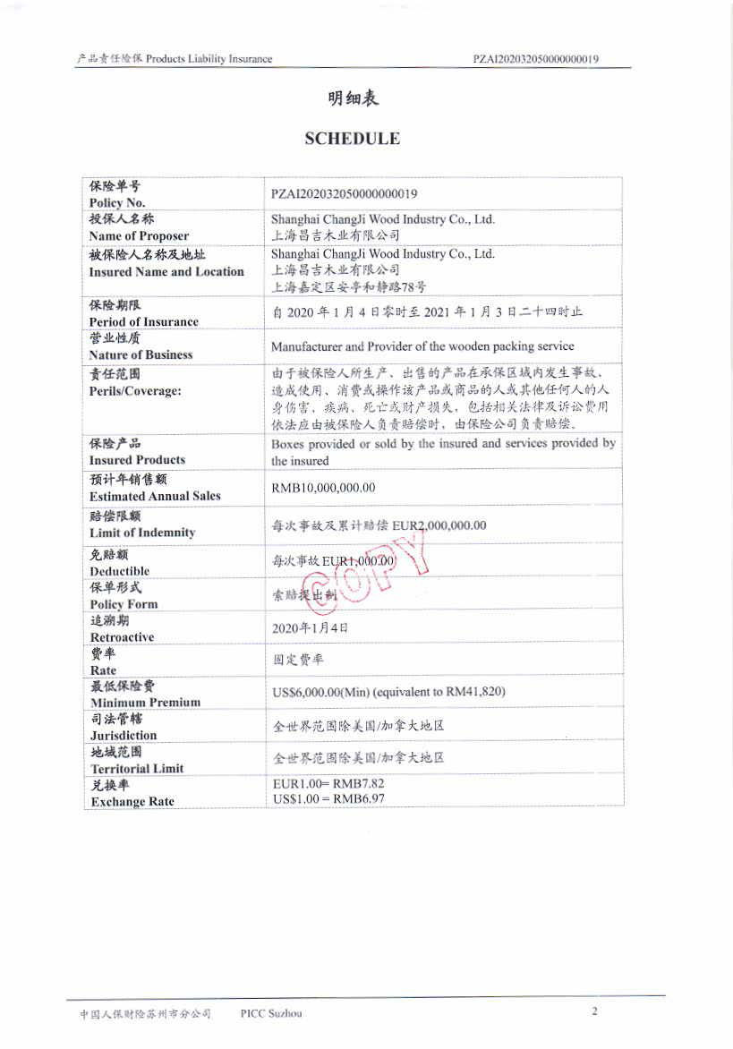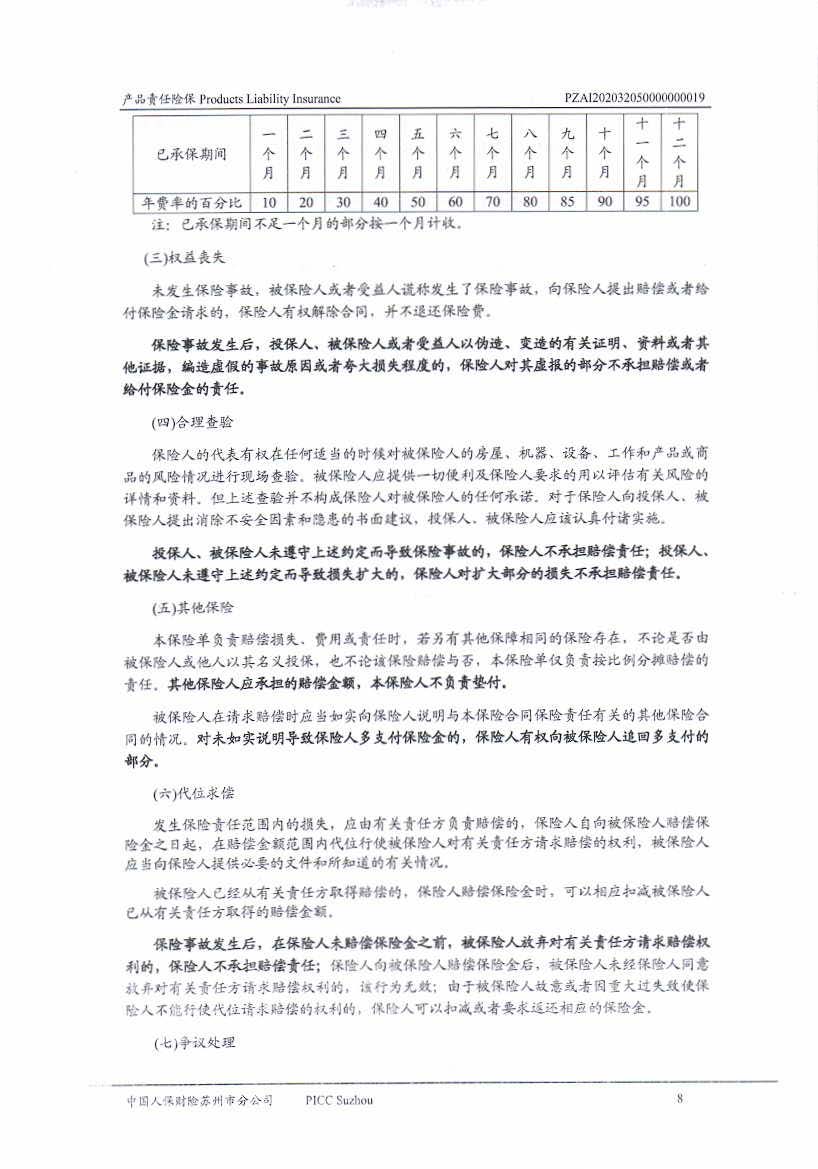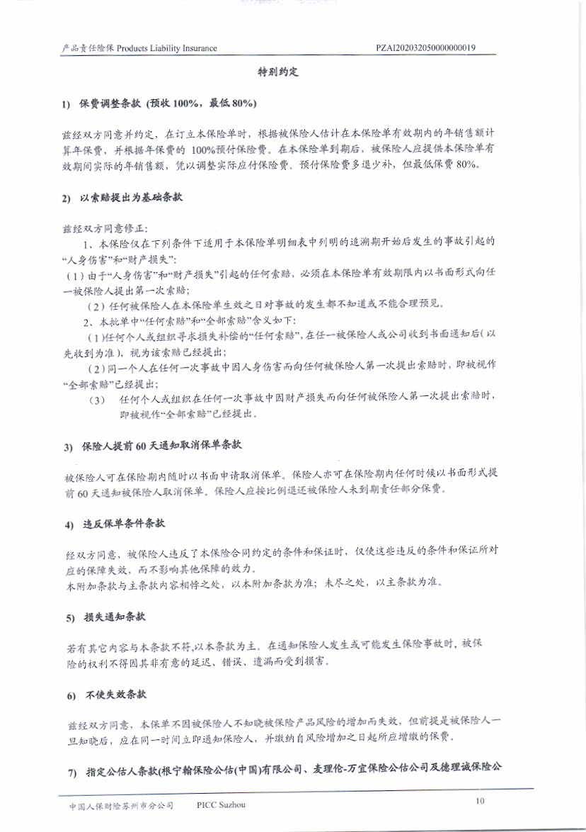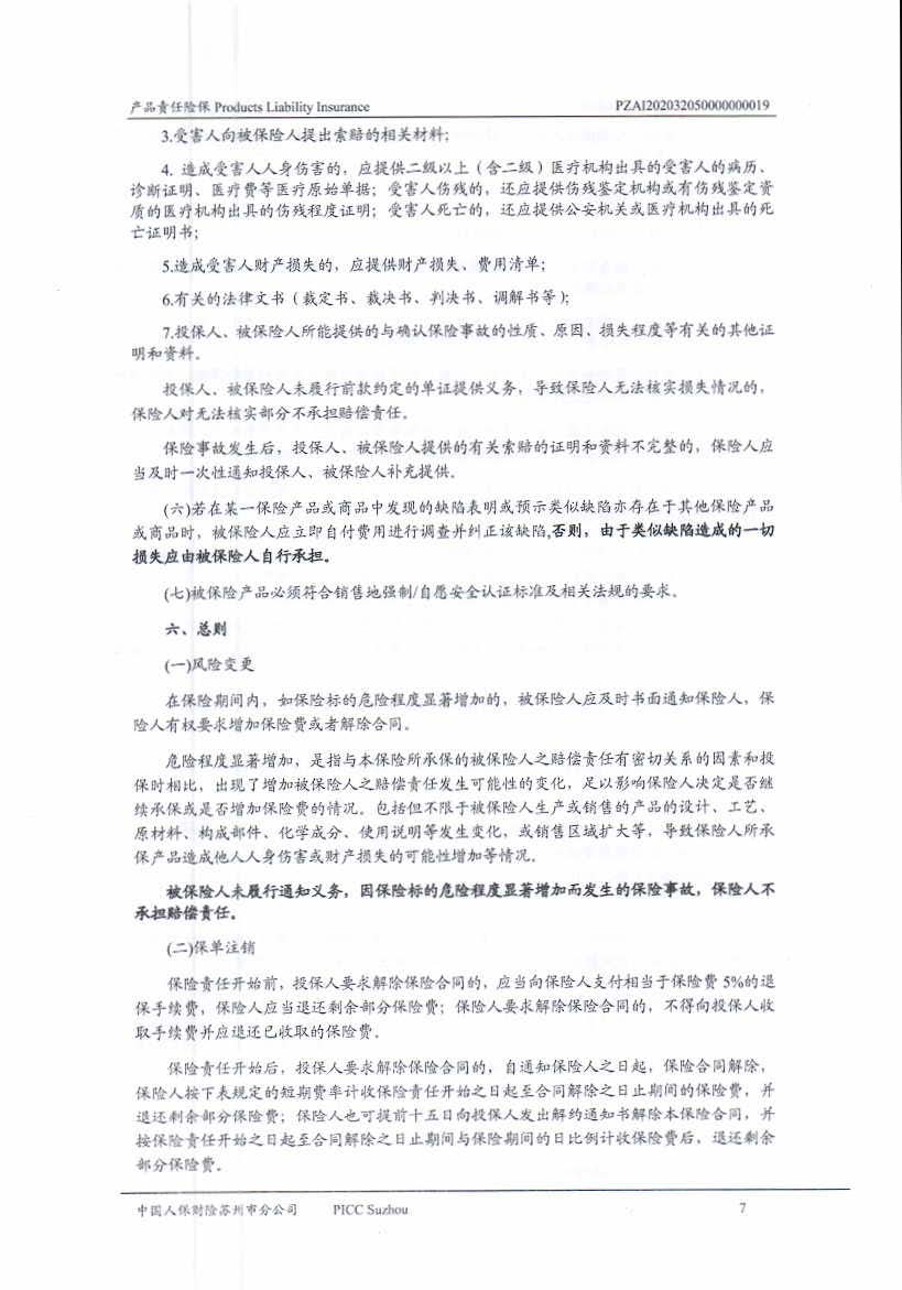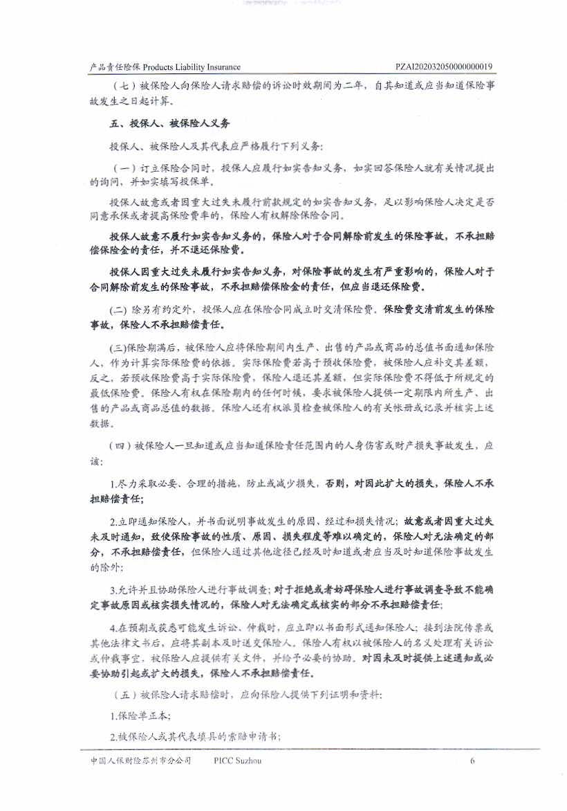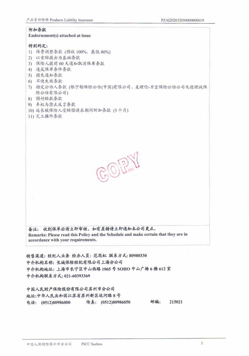 產品責任保險 Policy No.PZAI202032050000000019(中文版)